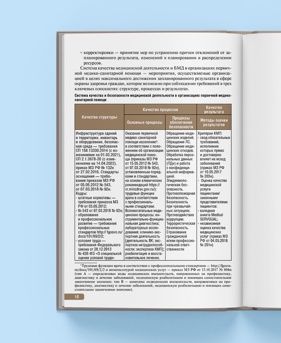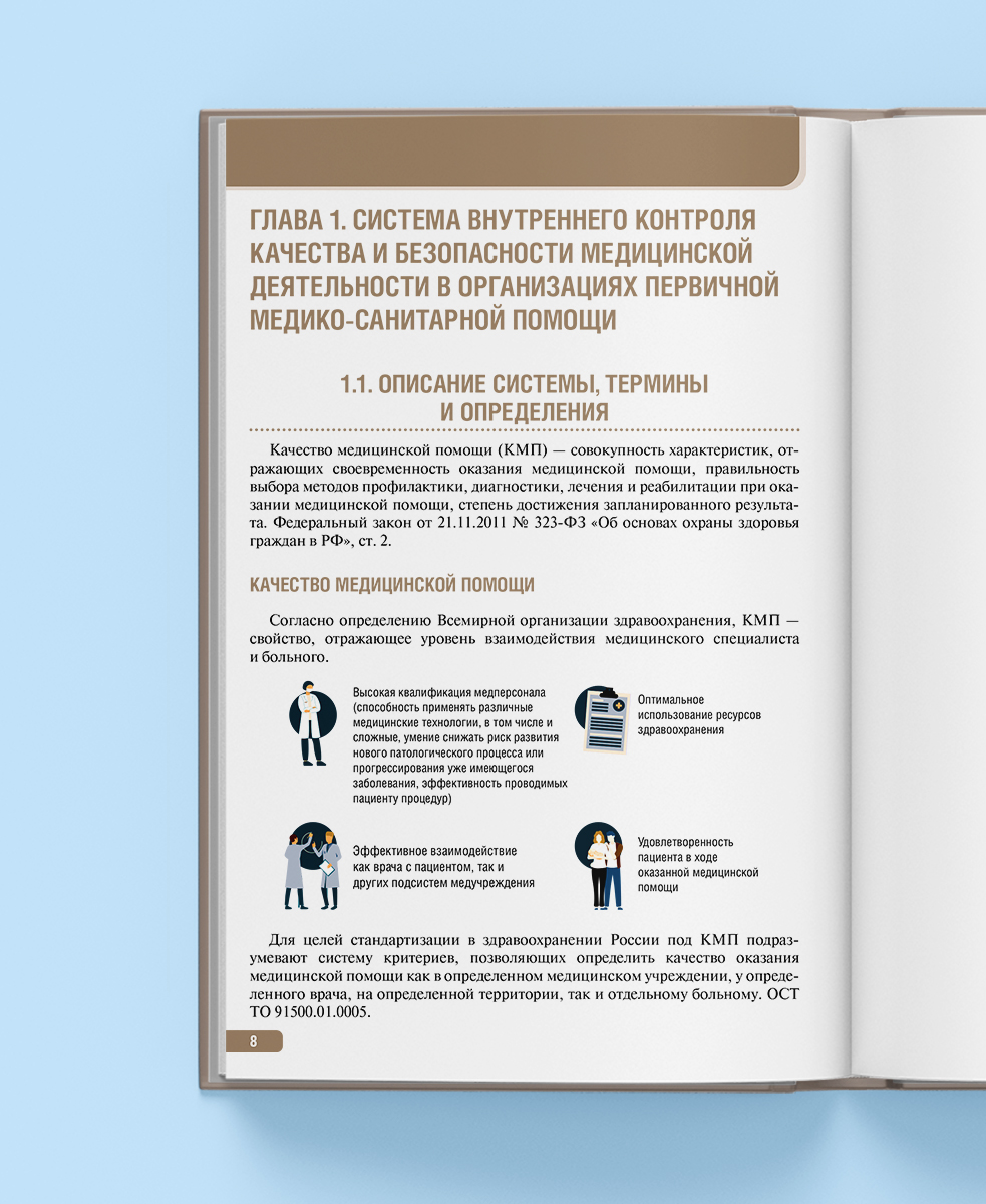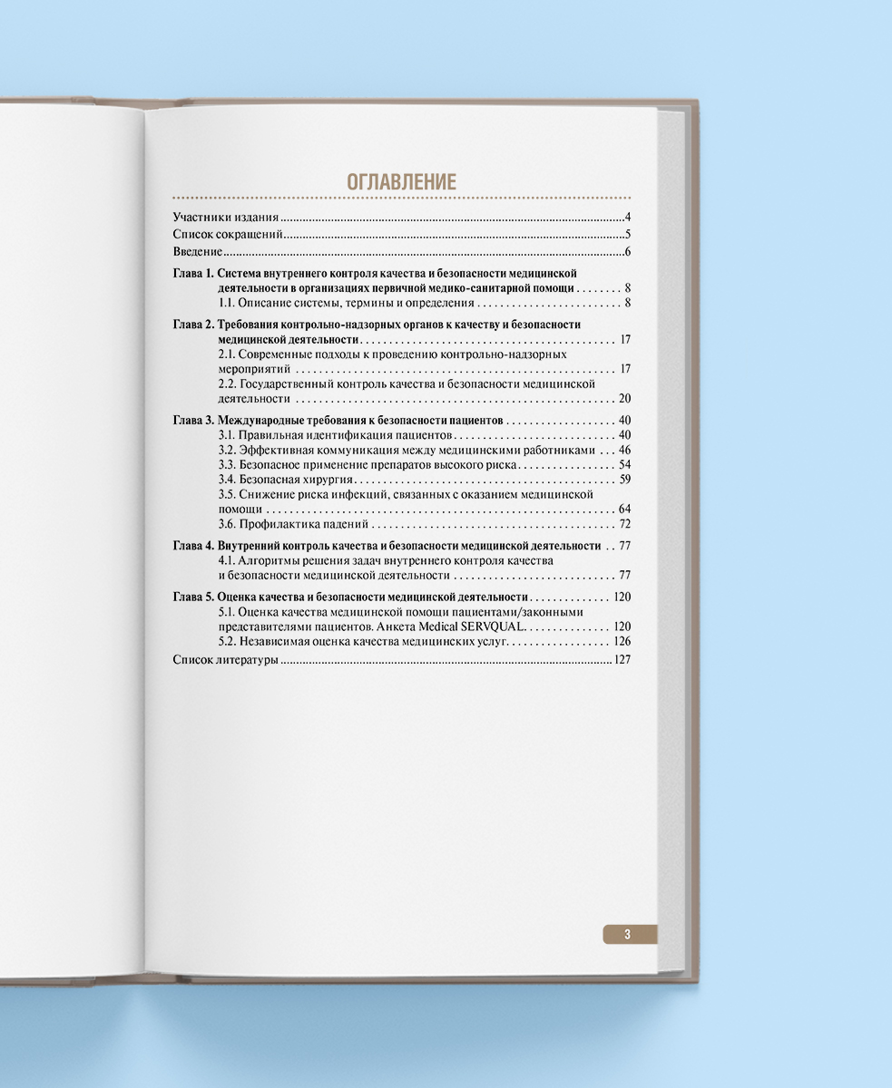 Ценность данного практического руководства заключается в эффективной подаче информации. Требования к качеству и безопасности медицинской деятельности аккумулированы с готовыми решениями в виде инструкций, стандартных операционных процедур, алгоритмов, шаблонов приказов и др.; изложены методики проактивного подхода к оценке рисков, а также риски конкретной медицинской организации и их классификация по приоритетному числу. Кроме того, авторами представлены требования контрольно-надзорных органов к качеству и безопасности медицинской деятельности и современные подходы к проведению контрольнонадзорных мероприятий.